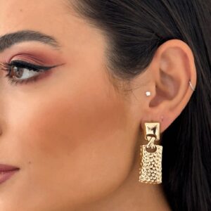 Brinco Folheado a Prata Argola Dois Fios com Detalhe Rabo de Tatu G